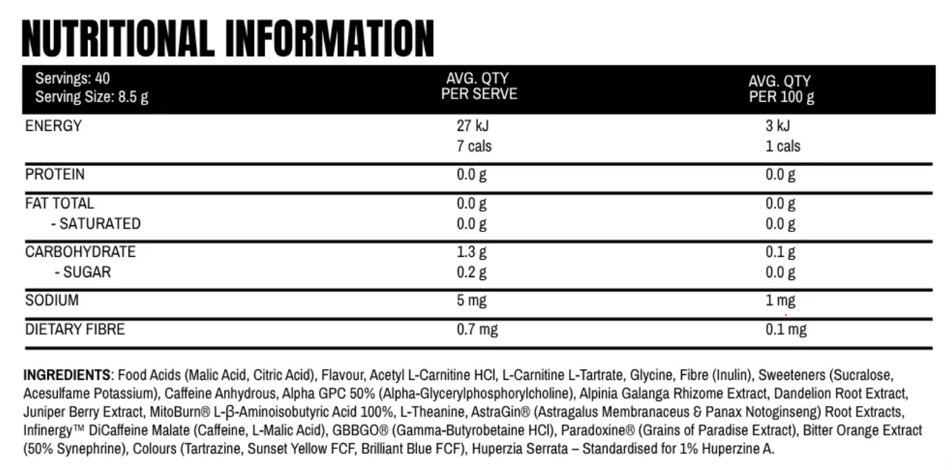 • 288mg Total Caffeine from Multi Source Blend