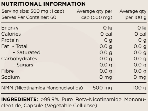 Switch’s NMN is 3rd party tested to >99.9% purity. As we age NAD+ declines and supplementing with NMN has been shown to increase NAD+ levels to help support healthy ageing.