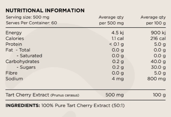 Tart Cherry (Prunus cerasus), also known as Montmorency Cherry, is a powerful wholefood extract celebrated for its ability to support sleep, recovery, and inflammation reduction.