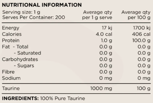 Boost your athletic performance and recovery with Taurine, a powerful amino acid known for its critical role in cell hydration, metabolism, and general health support. Essential for athletes looking to optimise their workout results, Taurine supports energy levels, regulates minerals within cells, and improves exercise capacity by reducing fatigue and muscle damage.